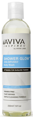 Say good-bye to regular soaps and body washes that actively strip spray or self-tans of their colour… say hello to AVIVA Inspires by AVIVA LABS Shower Glow Body Wash, the world's first DHA-infused Body Wash from AVIVA LABS Inc. which acts to extend the life of a spray tan by one to three days.