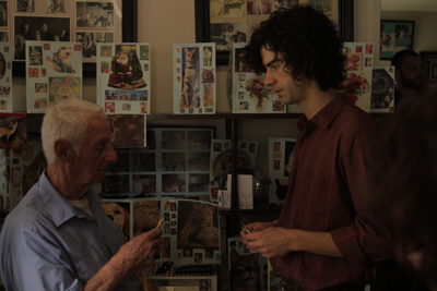 Miranda July: I worked with Jeanne McCarthy on the casting, and Hamish and David were two people we talked about from day one. I met both of them, and experienced that eerie sensation of rightness that tells you your search is over. This didn't stop me from considering and meeting with almost every single actor in their respective age groups before finally pulling the trigger (this is why having more options is not always helpful). Casting Joe was a different story altogether. I was doing an unrelated project wherein I called up people who were selling things in the PennySaver (classifieds newspaper) and asked if I could come interview and photograph them. Joe Putterlik was one of the many fascinating people I met through this project. Meanwhile I was writing this script which involved a man selling trees and I was trying to figure out some way for him to get inside the homes of strangers - out of his small world and in to another. Suddenly it was obvious that he could do what I was doing. I thought maybe I could even cast all the PennySaver people to play themselves, but in the end Joe was the only one who passed the screen test. I came over with a video camera and asked him tore-enact our first meeting -he ad-libbed, came up with amazing lines, often forgot we were filming, and was relentlessly willing to try it again. But more than that, he was an incredible person, the kind of person who inspires you to not only write him into the movie, but actually change the story in light of what he's taught you. He made all the cards (with the dirty limericks) for his wife over the last sixty years and that is just one tiny example of his bawdy, generous, tough spirit. He died on Thanksgiving, the day after I finished the movie.