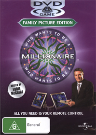 The Who Wants To Be A Millionaire - Family Picture Edition DVD Game includes all the usual features of this incredibly popular TV show including 50:50, Ask The Audience and Phone- A Friend. A different set of questions will appear each time. Hosted by Eddie McGuire the DVD Game will feature video footage from the TV game show including audience interaction. The game is very unique, it features all-Australian questions and its an exciting way in which to put the whole family in the famous Millionaire hot seat!